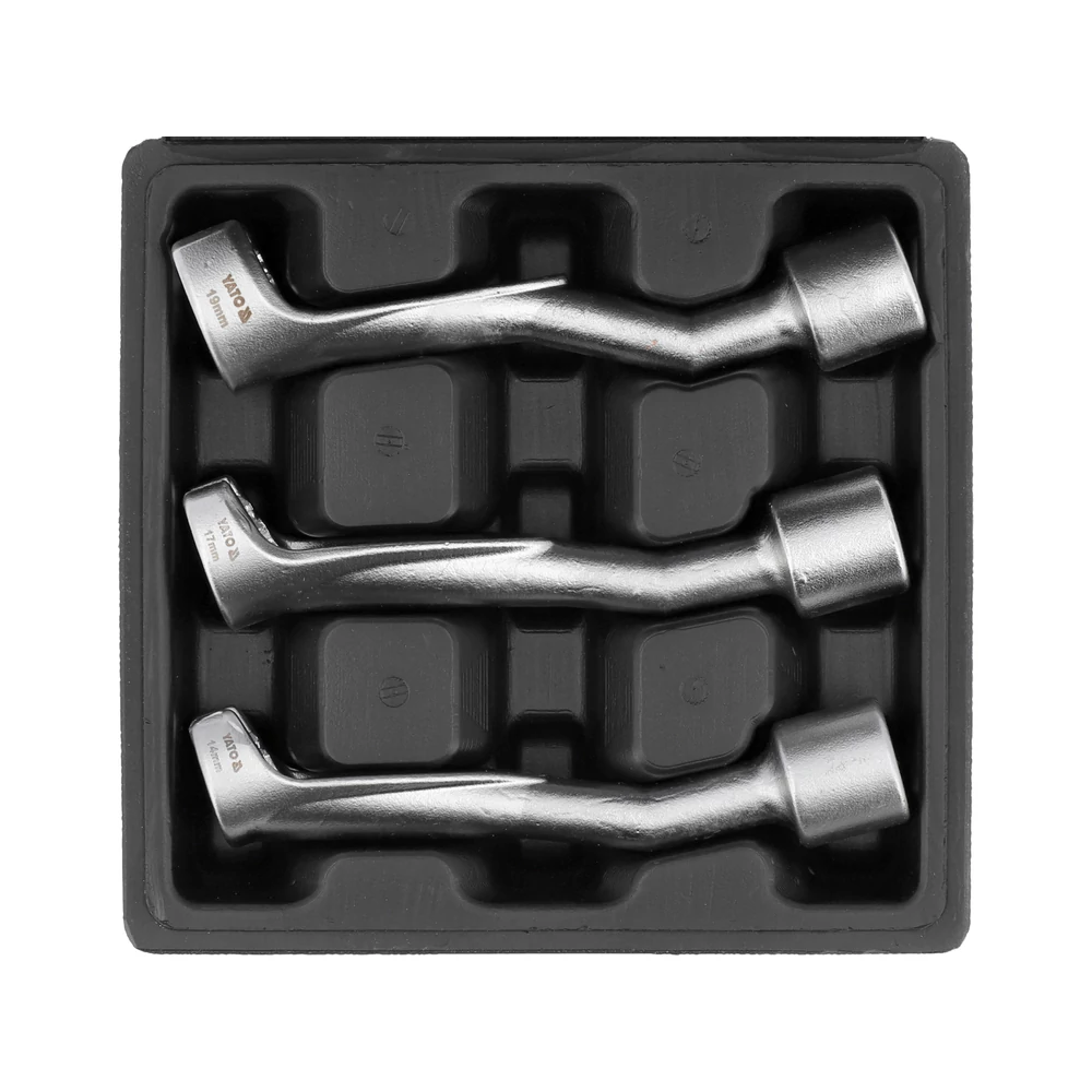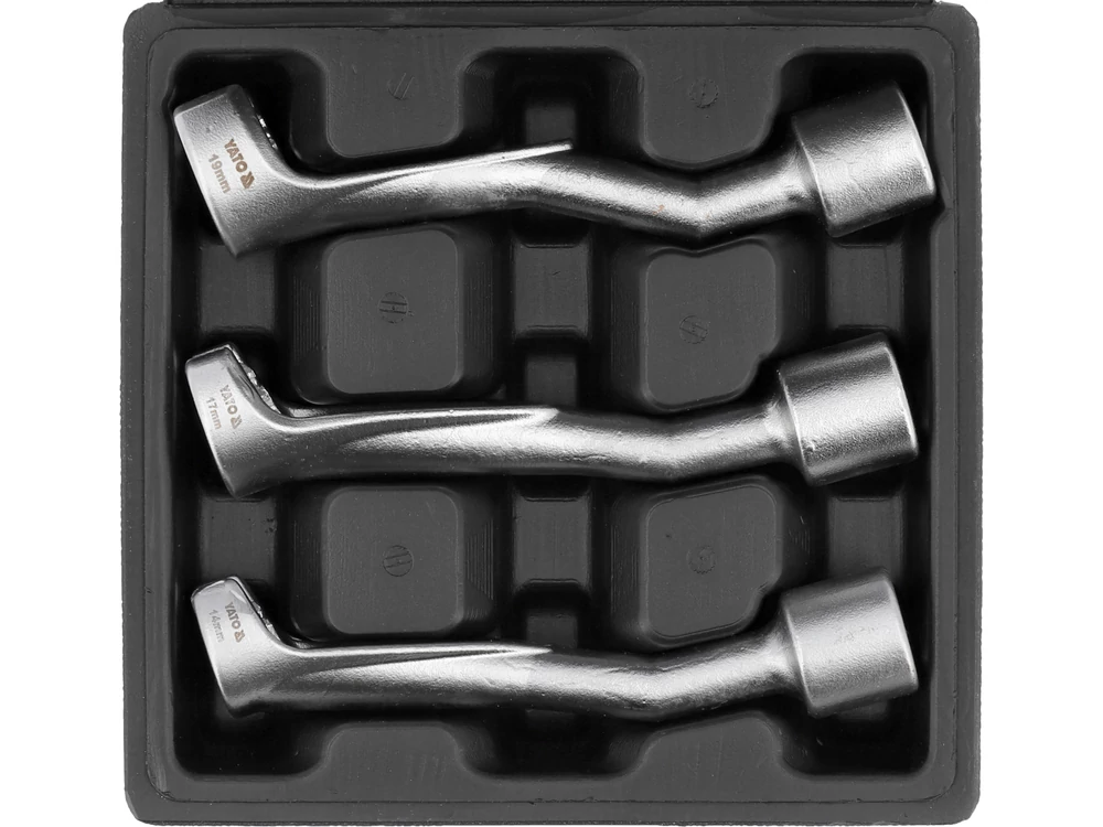 | Három darab 1/2"-os kulcskészlet üzemanyag-befecskendezőkhöz és befecskendező szivattyúkhoz. A kulcsok kiváló minőségű króm-vanádium acélból készültek, a készlet BMW, VW, Mercedes-Benz autókhoz használható. | |